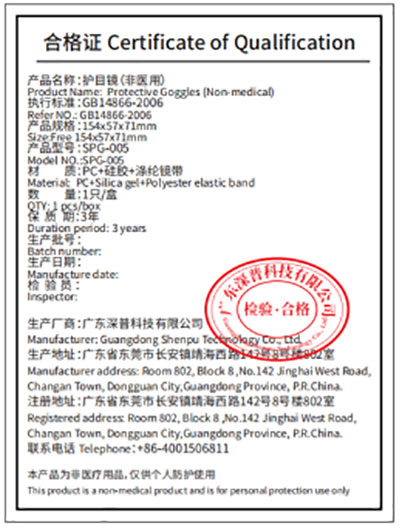 5. Certificate of Окуляри (без вентиляційних отворів)