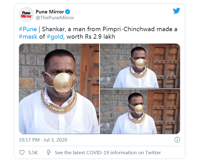 масканародився в Індії, бізнесмен Шанкар Кураде підготував золото